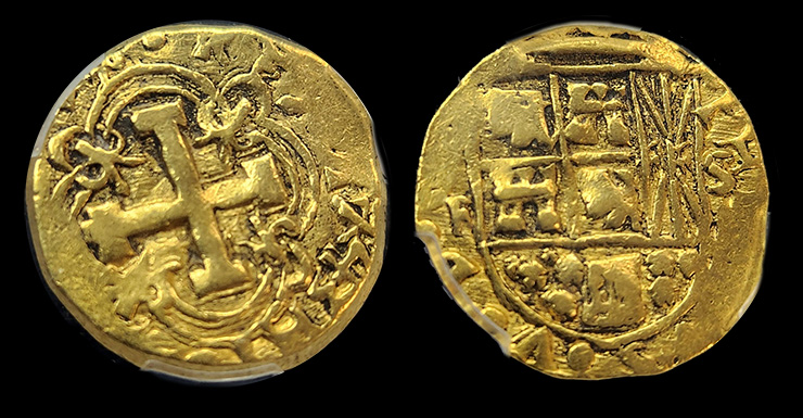 1743 Colombia Gold Cob 2 Escudo of Charles III