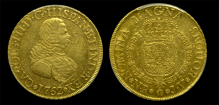 Minted in Colombia in 1762, this 8 Escudo coin showcases the exceptional craftsmanship of the era. Its design features intricate details that transport us back to the colonial period, evoking images of a bygone era and the grandeur of the Spanish Empire.