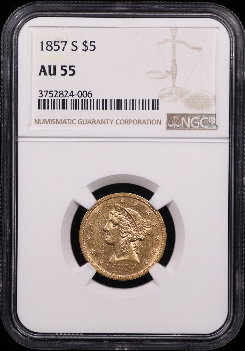 1857-S $5 Liberty Gold NGC AU-55