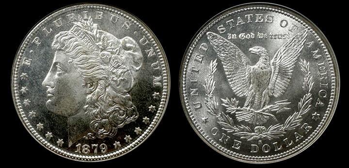 The Morgan Silver Dollar, designed by George T. Morgan, was first minted in 1878. The 1879-S Morgan Silver Dollar is among collectors' most prized coins. The "S" mint mark denotes its origin from the San Francisco Mint, known for producing some of the finest quality coins of the era.