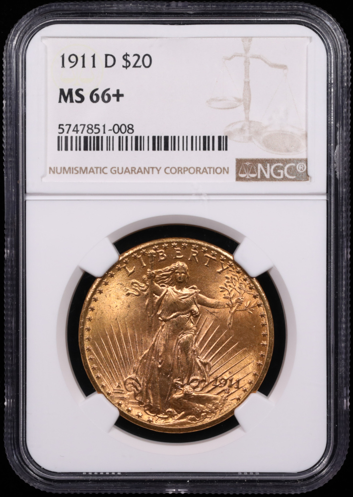 1911-D $20 St. Gaudens Double Eagle NGC MS-66+