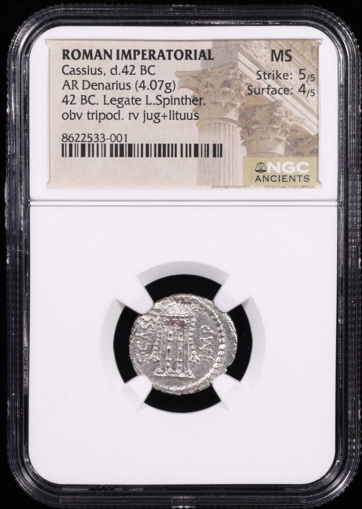 42 BC Cassius Silver Denarius NGC Mint State 5x4