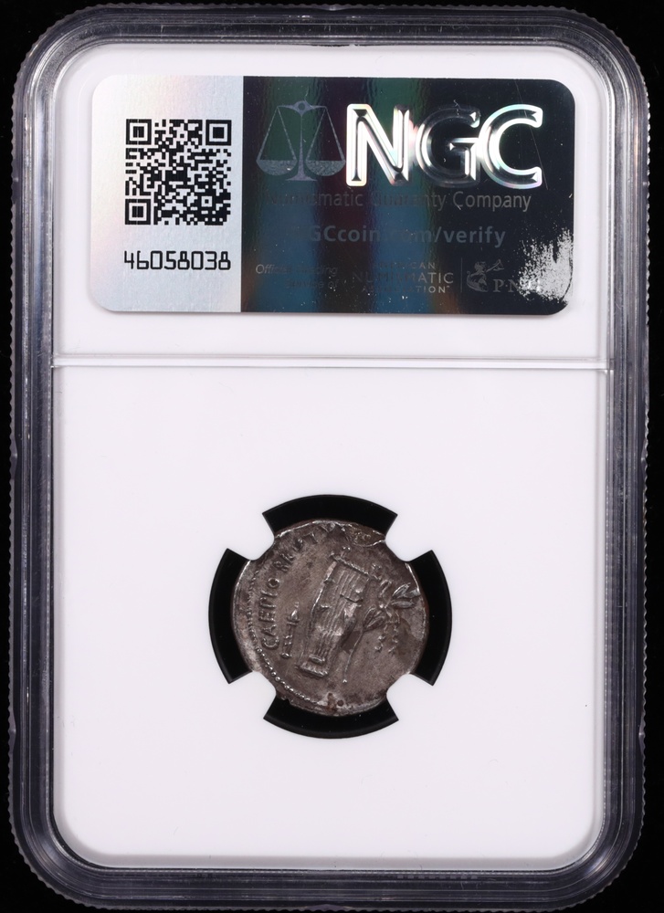 46 BC Julius Caesar Silver Denarius NGC Choice Extremely Fine