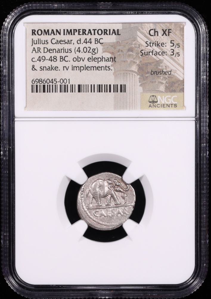 49-48 BC Julius Caesar Silver Denarius NGC Choice Extremely Fine