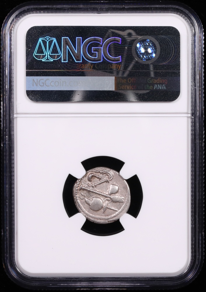 Graded Choice Extremely Fine by NGC, this denarius exhibits well-preserved detail with clear definition of the elephant and religious implements. The coin shows attractive natural patina with even surfaces and strong relief throughout. This type remains highly sought after by collectors of Roman Republican coinage and represents a direct connection to one of history's most famous leaders. The coin pictured is the exact coin you will receive.