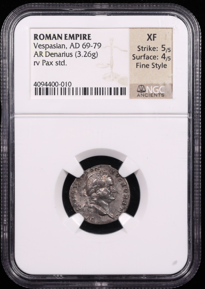AD 69-79 Vespasian Silver Denarius Pax Standard NGC Extremely Fine