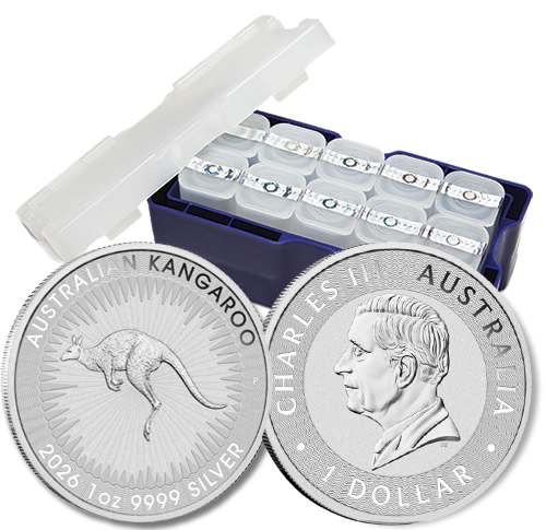Immediately distinguished by its design featuring Australia’s most famous animal, the Silver Kangaroos are also a top choice of bullion investors due to their standard 1-oz. weight in 99.99% pure silver as well as their global recognition and liquidity.