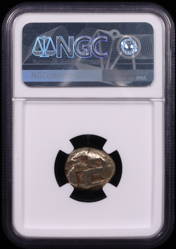 The reverse showcases a quadripartite incuse square, typical of early Greek coinage. This simple yet bold design reflects the geometric precision used in ancient minting techniques, providing a glimpse into the engravers' artistic and technical abilities.