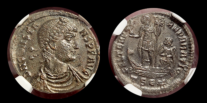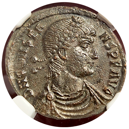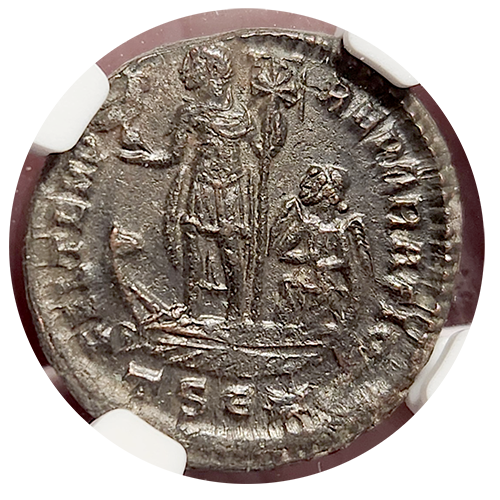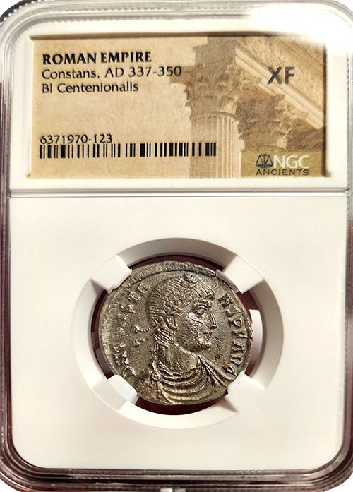 This Roman Empire Constans Bi-Centenionalis, certified in Extremely Fine (XF) condition, offers a glimpse into the later years of the Roman Empire under the rule of Constans, who reigned from AD 337 to 350. Constans was the youngest son of Constantine the Great and played a significant role in defending the empire from external threats and internal turmoil