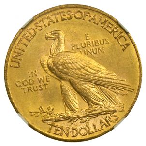 MS-62 is short for Mint State-62 which indicates uncirculated quality based on the grading scale used by PCGS and NGC, the top grading services in the industry. Once authenticated and graded, these services seal coins, along with their grading certificate, in plastic “slabs” as pictured. MS-62 $10 Indians offer a low-cost option ideal for adding certified, uncirculated Pre-1933 Gold to a gold bullion portfolio.