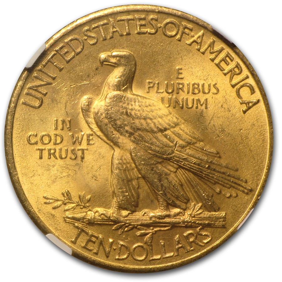 Mint State-63 (“MS-63”) is the grade, or quality, of these $10 Indian Gold Coins as certified by NGC or PCGS which are the two trusted grading services in the industry. A numerical grade of 60 or higher is uncirculated, or Mint State, quality and MS-63 to MS-66 are “Investment-Grade”. NGC and PCGS seal certified coins in their plastic “slab” like pictured here.