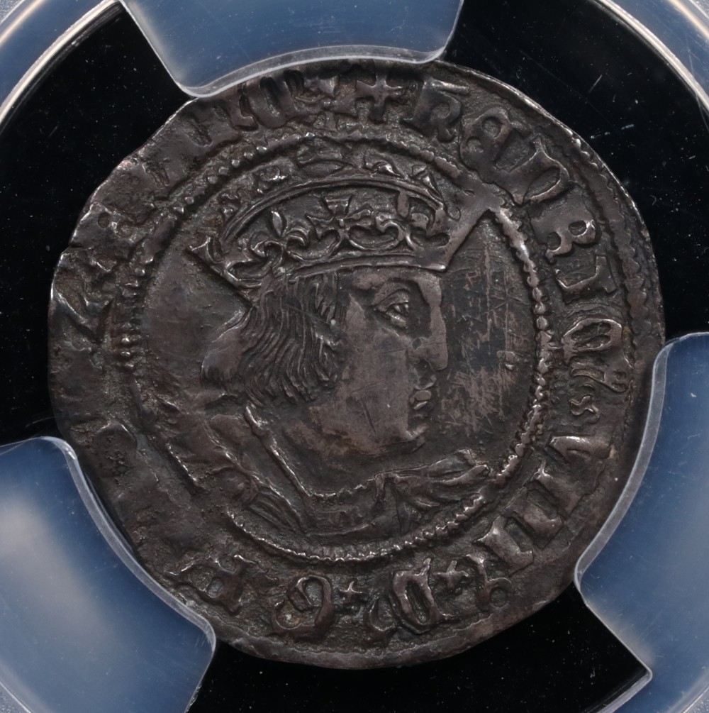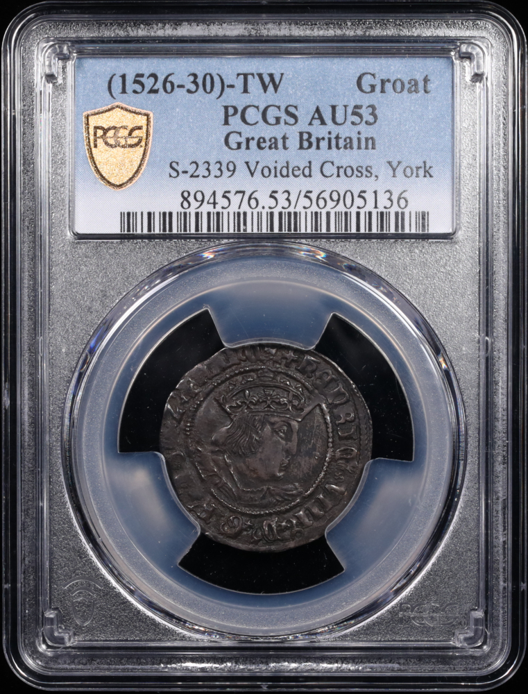 Graded PCGS AU-53, this groat retains substantial detail in the portrait, legends, and heraldic elements despite light wear from circulation. The surfaces show even gray-silver patina with good eye appeal for the grade, and the strike displays the characteristic bold relief associated with York mint production. Tudor groats from ecclesiastical mints like York are particularly desirable among collectors of English hammered silver, representing both the monetary history and ecclesiastical power structures of Henry VIII's reign. The coin pictured is the exact coin you will receive.