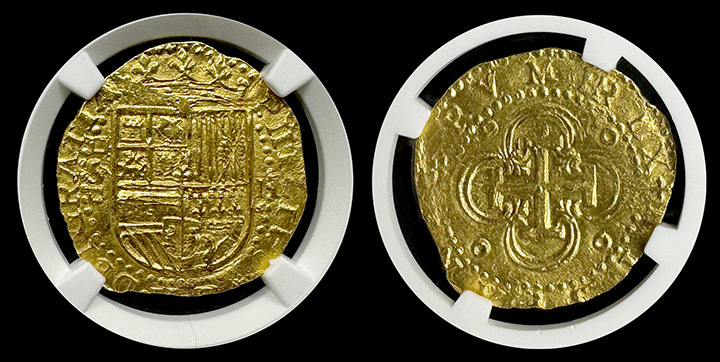 Embrace the allure of history with this NGC-certified MS64 Spanish Gold 2 Escudo, where each detail reflects the artistry and historical significance of a bygone epoch.
