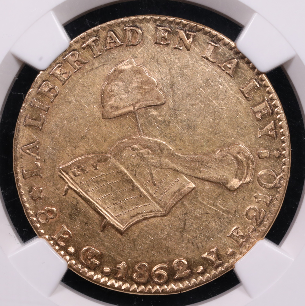 1862-GO YE Mexico 8 Escudos NGC AU-50