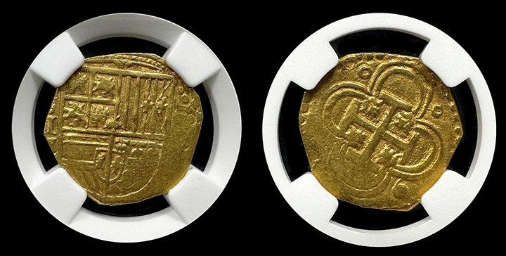 This 2 Escudo, certified by NGC in About Uncirculated-58 condition, is a rare find, particularly given that it is the only example from 1590-91 certified. The exceptional preservation of this over 400-year-old gold cob speaks to its careful handling throughout history. With minimal signs of wear and sharp design elements, this coin is a true numismatic gem.