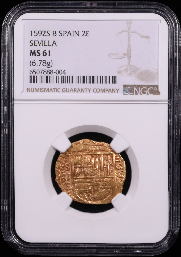 1592 Seville, Spain 2 Escudo NGC MS-61