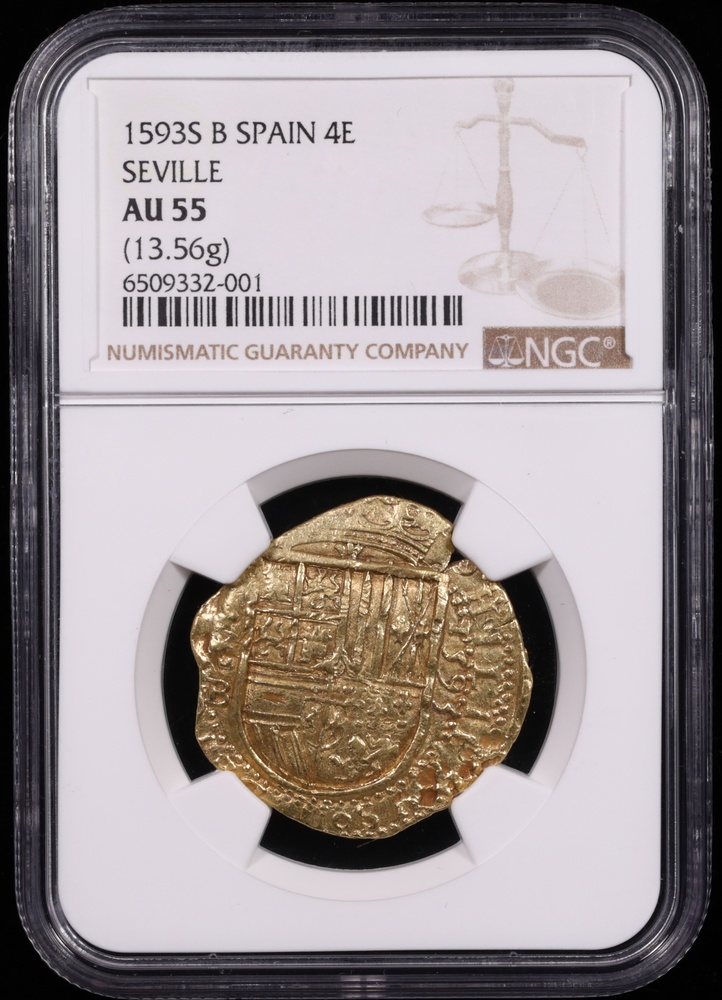 1593 Seville, Spain 4 Escudo NGC AU-55