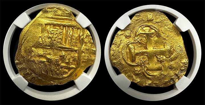 This is one of the earliest catalogued dates in the series, with only the 1614 Segovia coming in earlier on the census. Fourteen total have been certified, this is one of 3 in MS64 with a lone MS65 example graded better.The MS 64 grade indicates that the coin is in near-perfect condition, with only minor imperfections or signs of wear. This makes it a highly prized collectible among numismatists and collectors, who value coins for both their historical significance and their aesthetic appeal.