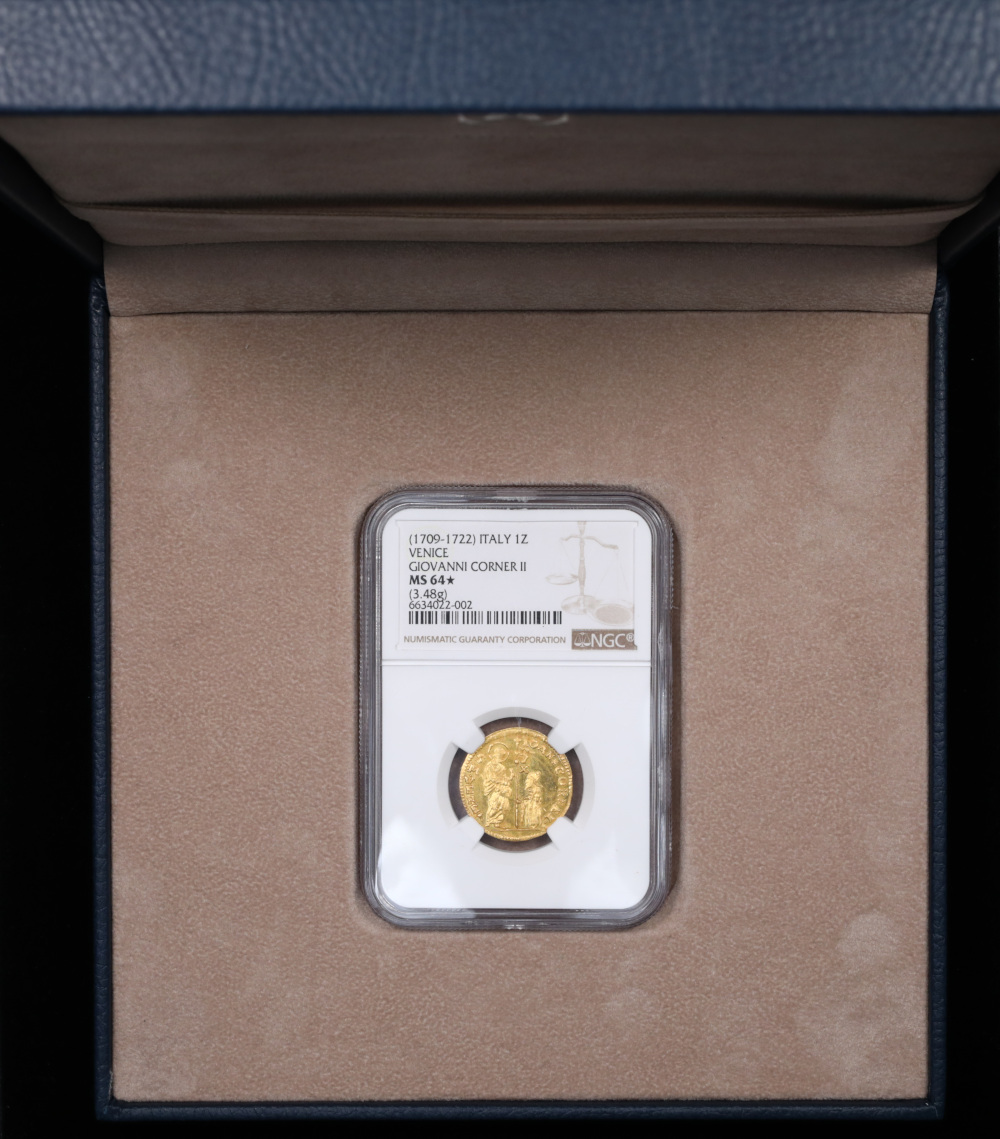 Graded MS-64★ by NGC, this zecchino displays exceptional preservation with lustrous surfaces and sharp definition throughout both sides. For the entire 200 year series, this is the only Star notation that NGC has ever awarded! Out of the 44 certified for this date, it's the only example in MS64 with just 2 known finer. The Star designation indicates superior eye appeal for the grade, reflecting the coin's outstanding visual qualities. Venetian zecchini from the Corner II period remain highly sought after by collectors of European gold and Italian states coinage. The coin pictured is the exact coin you will receive.