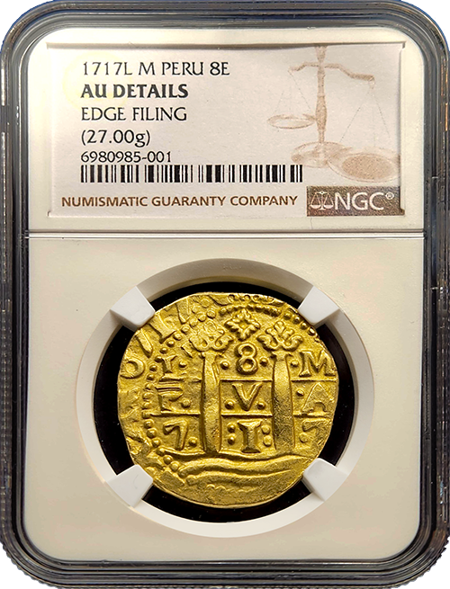 Note that Edge Filing is listed on the NGC holder, a characteristic occasionally seen on early gold escudos, likely performed at the mint or in commerce to reduce the weight of gold in the coin. Despite this, the coin’s sharp design elements, rich luster, and strong eye appeal make it an exceptional addition to any serious numismatic collection.