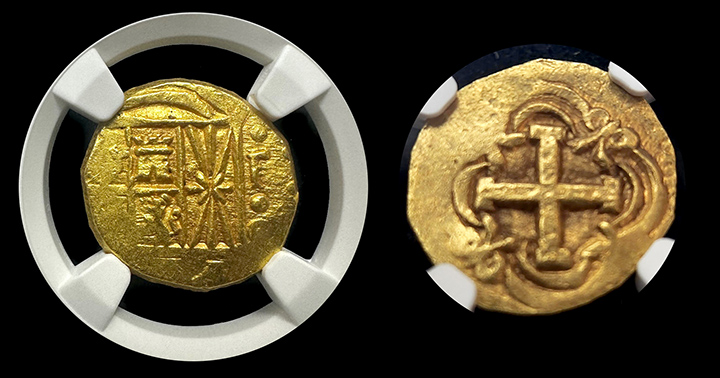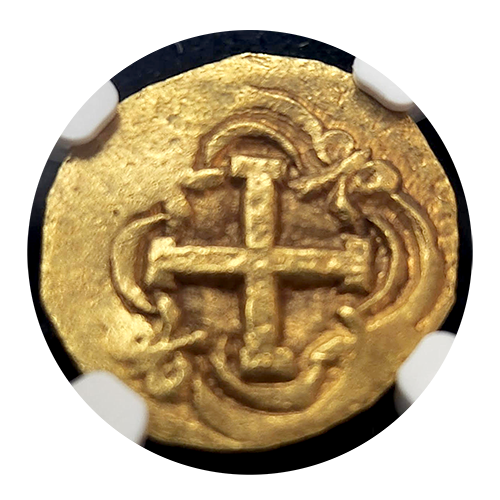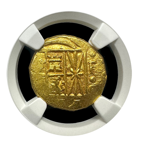 On the reverse, the prominent cross design is equally impressive, with its precise and clear lines adding to the coin’s aesthetic appeal. The well-centered and fully evident details of the reverse make this piece a standout example of Spanish colonial minting. The preservation of these intricate elements highlights the coin’s exceptional condition and historical significance.