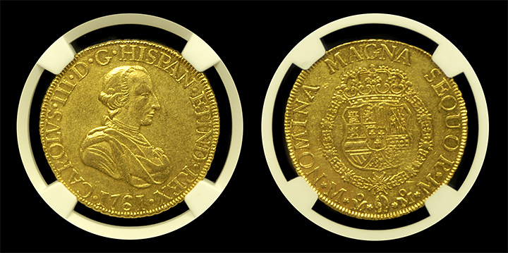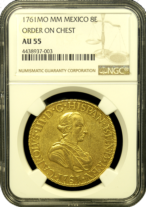 1761 Mexico 8 Escudo Order on Chest NGC AU-55