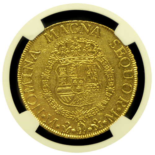 This is an extremely rare, one-year design type struck in Mexico City in 1761. Only 25 total examples have been certified and just two are known in higher grades. We love the value in early Mexico gold issues such as this. Coin shown is the exact coin you will receive. We have handled only one other example of the 1761 Mexico 8 Escudo in over three decades of business.