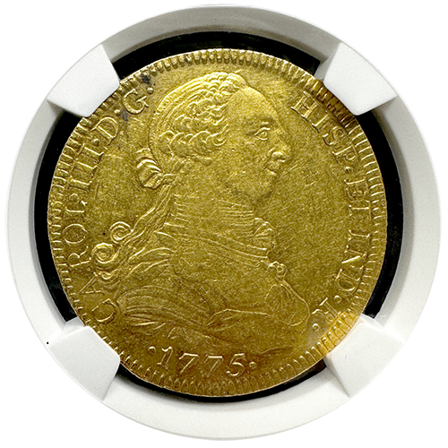 Immerse yourself in Mexico's rich colonial heritage with the 1775-MO (FM) Mexico 8 Escudo coin, featuring an inverted mintmark/assayer. Connect with one of our knowledgeable Austin Rare Coin Advisors today to acquire this esteemed piece and explore our extensive collection of rare and historic coins.