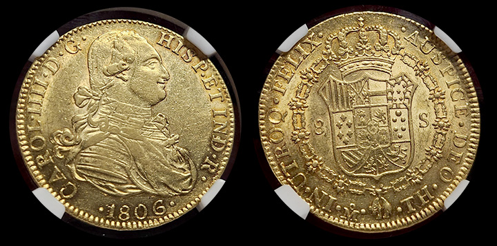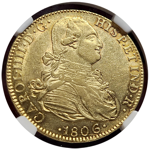 In conclusion, this 1806-MO-TH Mexico 8 Escudo is not just a coin but a significant piece of history, embodying the power and reach of the Spanish Empire. Its preservation in About Uncirculated 55 condition, coupled with NGC certification, makes it an extraordinary addition to any numismatic collection.