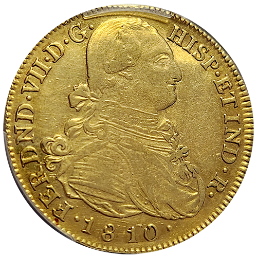 1810 Colombia Calico 8 Escudo PCGS AU-53