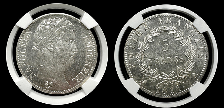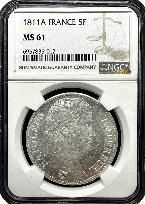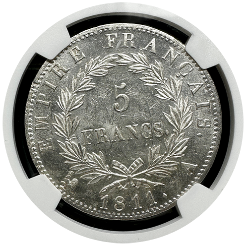 This stunning silver French 5 Franc is far nicer than most you will encounter today. Only 186 examples have been certified in all grades combined by NGC and PCGS. The iconic portrait of Napoleon on the obverse along with it's size and high silver content make it a great coin for the money.