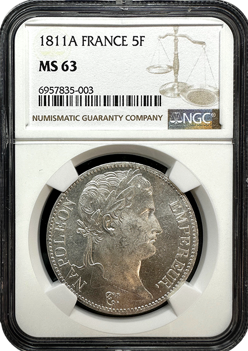 1811 Paris, France 5 Francs NGC MS-63
