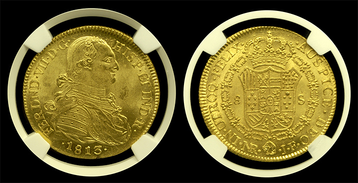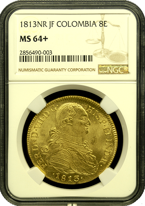 1813 Colombia 8 Escudo NGC MS-64+