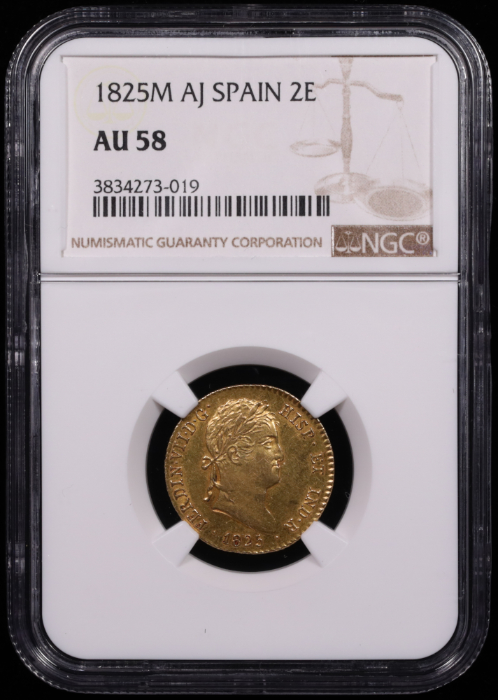 1825-M Spain 2 Escudos Ferdinand VII NGC AU-58