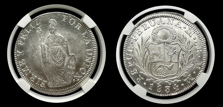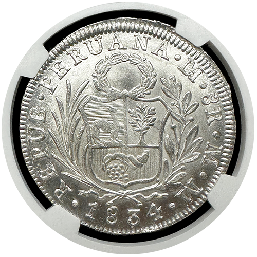 1834 Lima, Peru 8 Reales NGC MS-64+