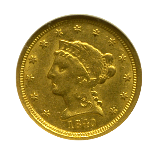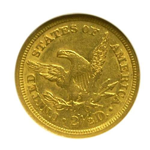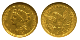 We feel that mint condition, Pre Civil War New Orleans Mint gold is undervalued in the current marketplace, and that includes this Mint State 60 first year of issue Quarter Eagle. It has a low mintage of 35K coins and today only 200 are known in all grades combined. The issue is known to be very softly struck in the centers, as you can clearly see on this example.