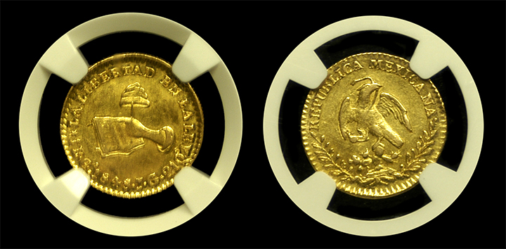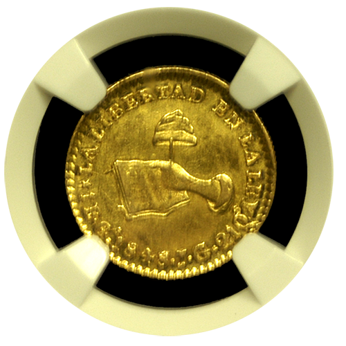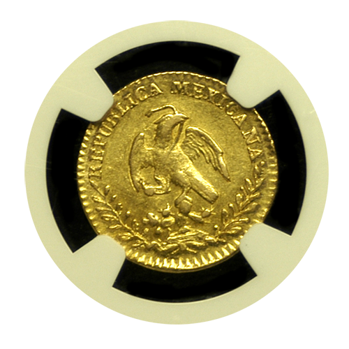 The “Hand on Book” Mexican gold escudo series from 1823-1873 is fascinating and surprisingly rare for the money. This particular coin is no exception--only 12 of these have been certified in all grades combined by PCGS and NGC!