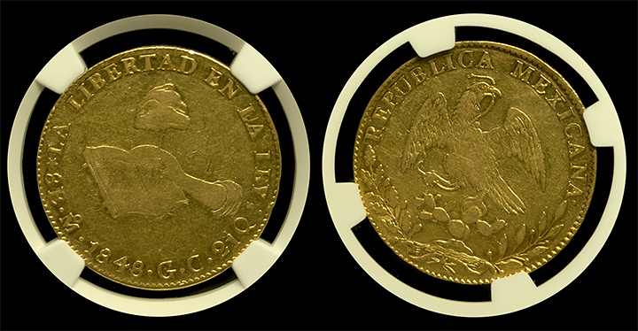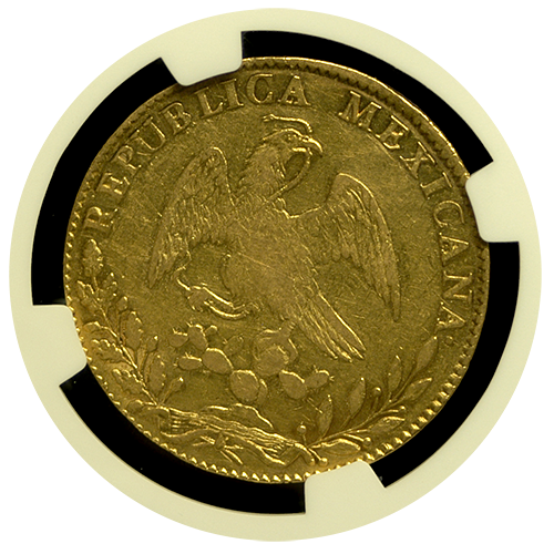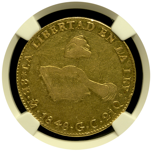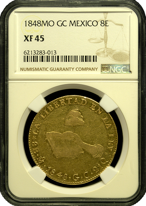 1848-Mexico Hand on Book 8-Escudo NGC XF-45