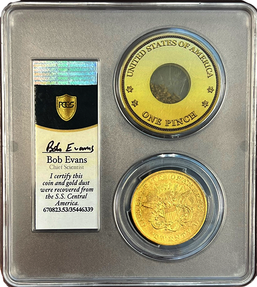Whether admired for its historical significance, cherished for its beauty, or sought after as an investment, this 1852 $20 Gold Liberty coin holds a special place in the hearts of collectors. With its PCGS certification ensuring its authenticity and condition, it stands as a timeless reminder of America's rich numismatic tradition. An original "pinch" of gold dust recovered from the SS Central America is also encapsulated into the custom PCGS slab.
