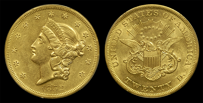 1852 $20 Liberty Gold SS Central America PCGS AU-55