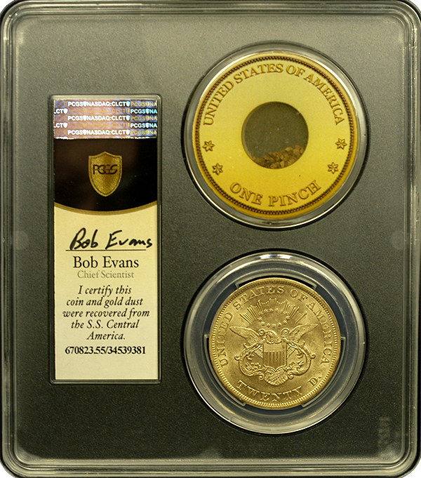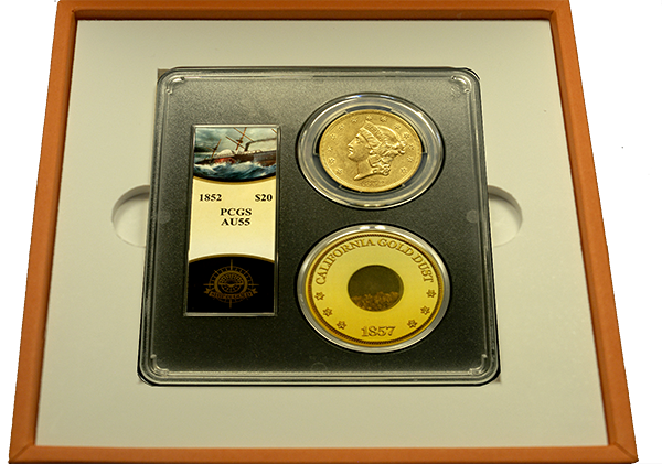 Whether admired for its historical significance, cherished for its beauty, or sought after as an investment, this 1852 $20 Gold Liberty coin holds a special place in the hearts of collectors. Its PCGS certification ensures its authenticity and condition, and it stands as a timeless reminder of America's rich numismatic tradition. An original "pinch" of gold dust recovered from the SS Central America is also encapsulated into the custom PCGS slab.