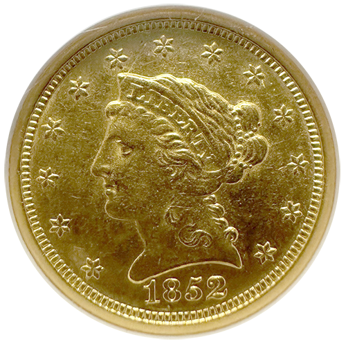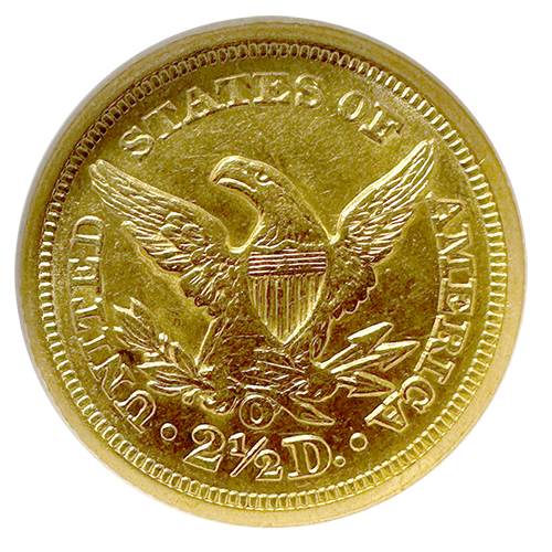 Certified by NGC in Mint State 60, this 1852-O Gold Liberty 2.5 Dollar coin exemplifies a balance of historical significance and quality preservation. The MS-60 grade indicates a coin with full detail and mint luster, though it may show some minor contact marks and abrasions. NGC's certification assures collectors of the coin's authenticity and grade, providing confidence in its value.
