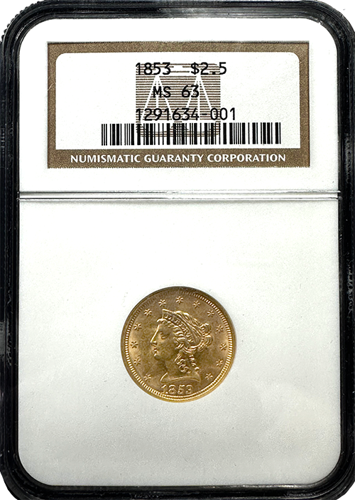 Exquisite Rarity: 1853 $2.5 Liberty Quarter Eagle, NGC Certified MS63