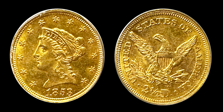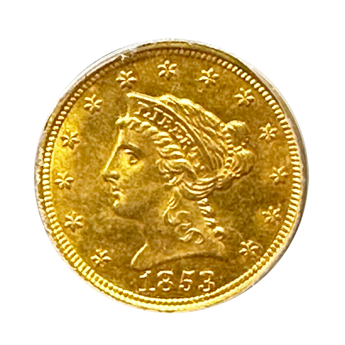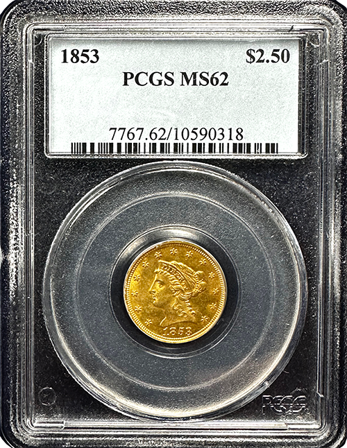1853 $2.5 Liberty Quarter Eagle, PCGS Certified MS62