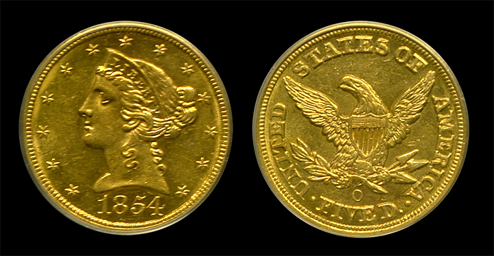 1854-O $5 Liberty Gold PCGS MS-62