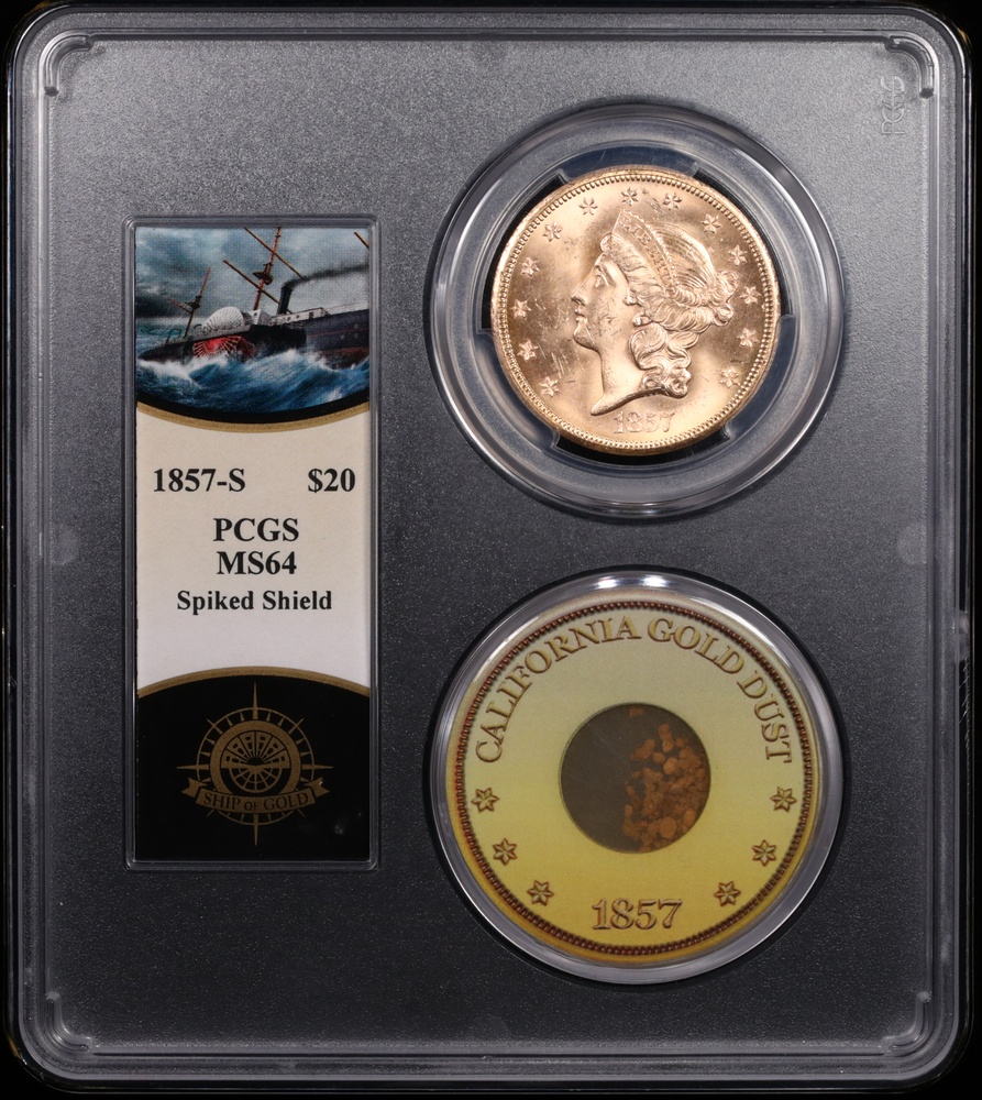 1857-S $20 Liberty Gold SS Central America Shipwreck PCGS MS-64