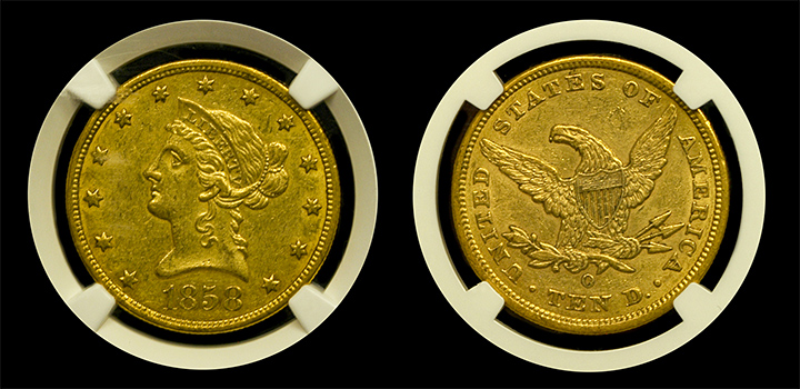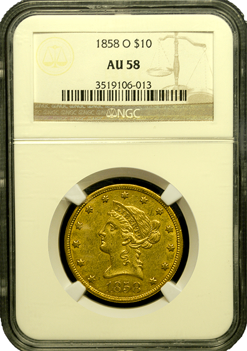 1858-O $10 Liberty Gold NGC AU-58