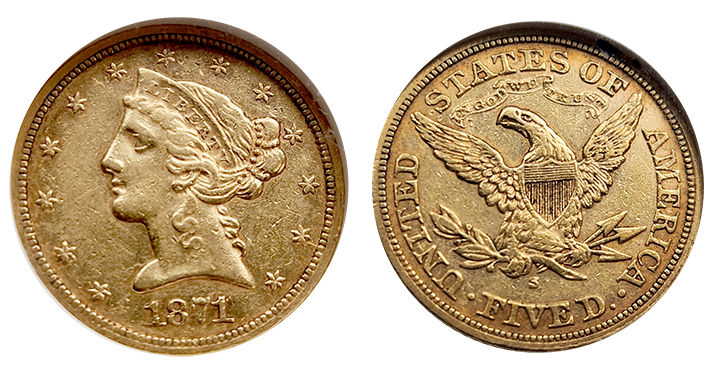 With its historical significance, limited surviving population, and well-preserved condition, this 1871-S $5 Liberty Gold Half Eagle represents an outstanding opportunity for serious collectors and investors.
