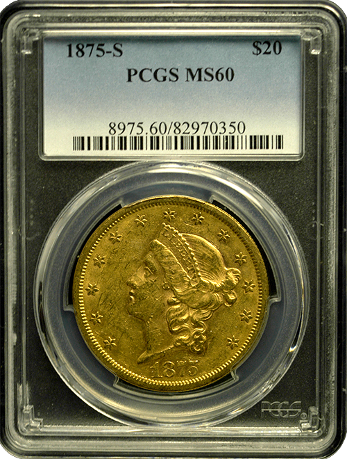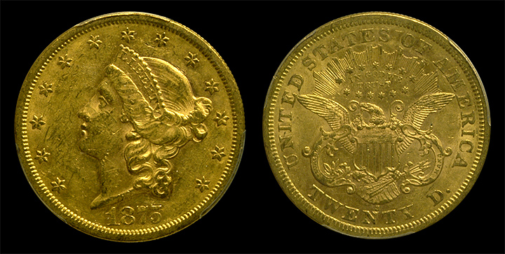 Struck ten years after the end of the Civil War, this mint condition Double Eagle offers a lot of value in today’s market.