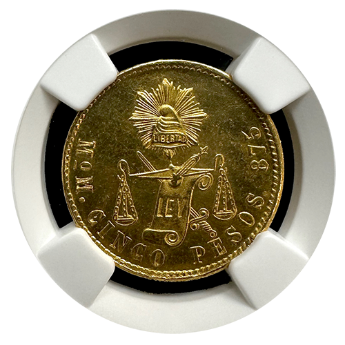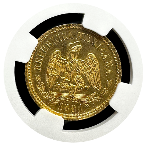 The 1881 Mexico Gold 5 Peso coin is highly sought-after by collectors due to its rarity and historical significance. The coin contains 0.1206 troy ounces of pure gold, making it a valuable addition to any investment portfolio. At Austin Rare Coins, we are proud to offer this rare and beautiful coin to our clients.